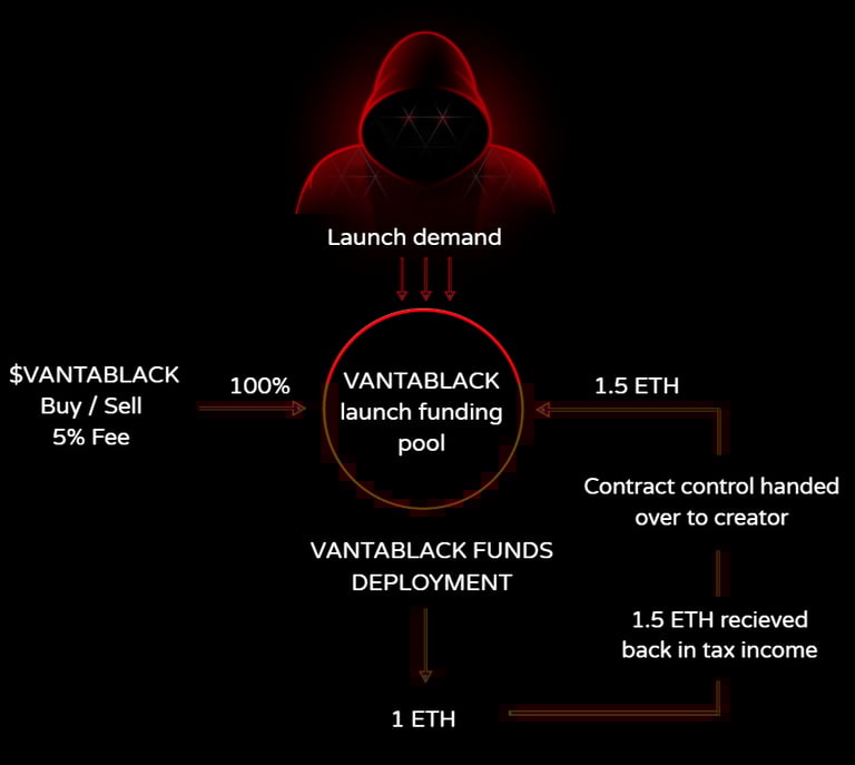 Vantablack is named after the darkest substance known, absorbing all light, which represents our mission to absorb the complexity of funding and launching a token.